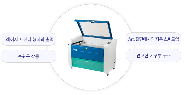 Q 시리즈는 다양한 산업에 적용이 가능하며 작업 영역이 최대 A+ 사이즈로 대형 작업에 적합한 레이저 절단/조각 장비입니다.