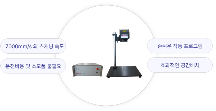 | 구성 장치 | 마킹 유닛 | 스캔 헤드 / 스캔 헤드 높낮이 바 / 작업 테이블 |